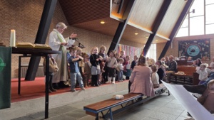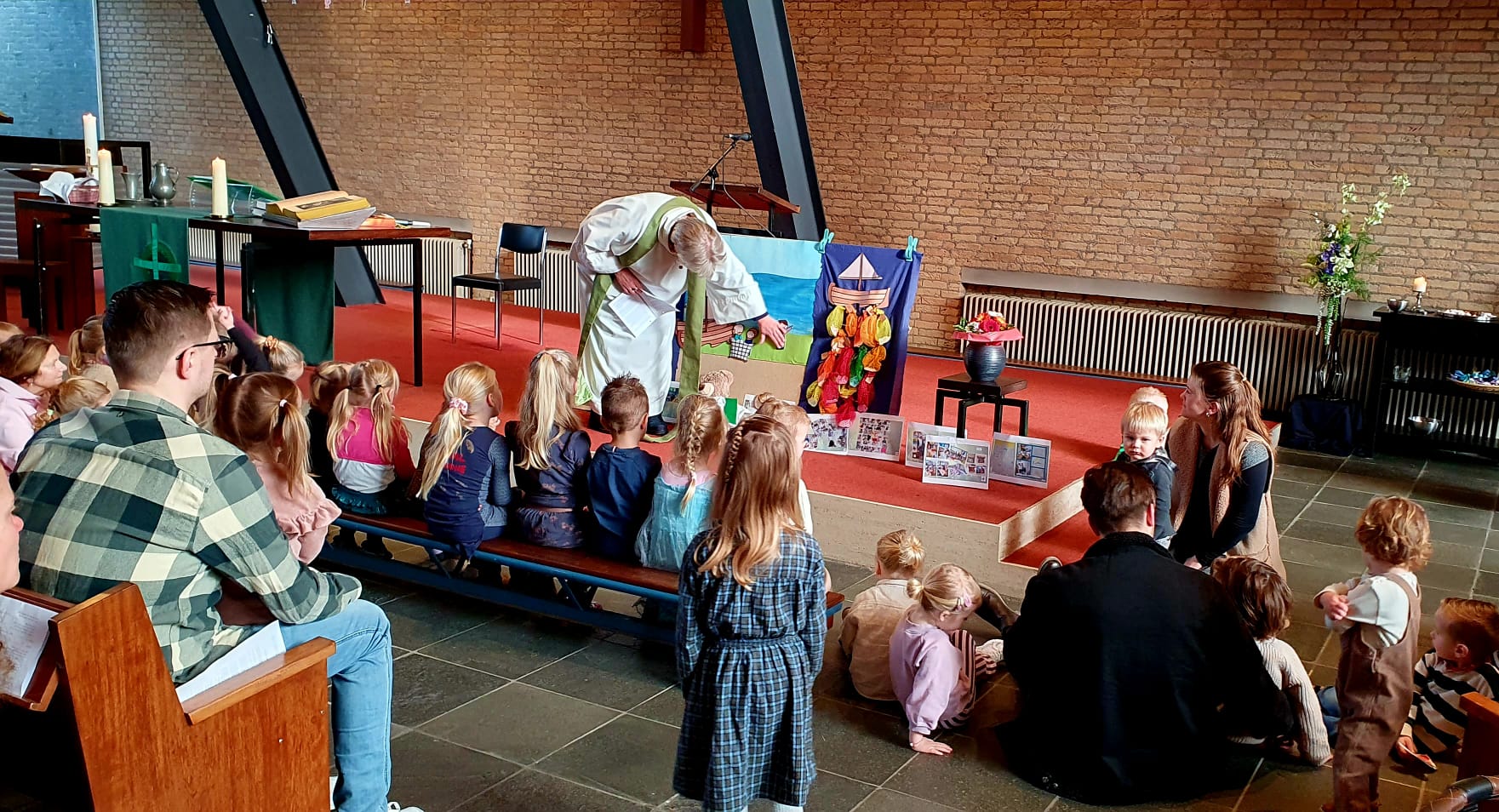 Zondag 8 februari werd de jaarlijkse Ker&Schooldienst gehouden . In onze kerk waren de peuters van diverse scholen uit Alblasserdam te gast. Onze predikant had hieraan voorafgaand de scholen bezocht zodat de kinderen wel wisten wie “die mevrouw” is en wat ze doet. Het thema van deze dienst was “Het is een wonder”. Een dankbaar thema over de wonderbare visvangst. Bij het verlaten van de kerk werden (passend bij het thema) aan de kinderen snoepvissen uitgedeeld.